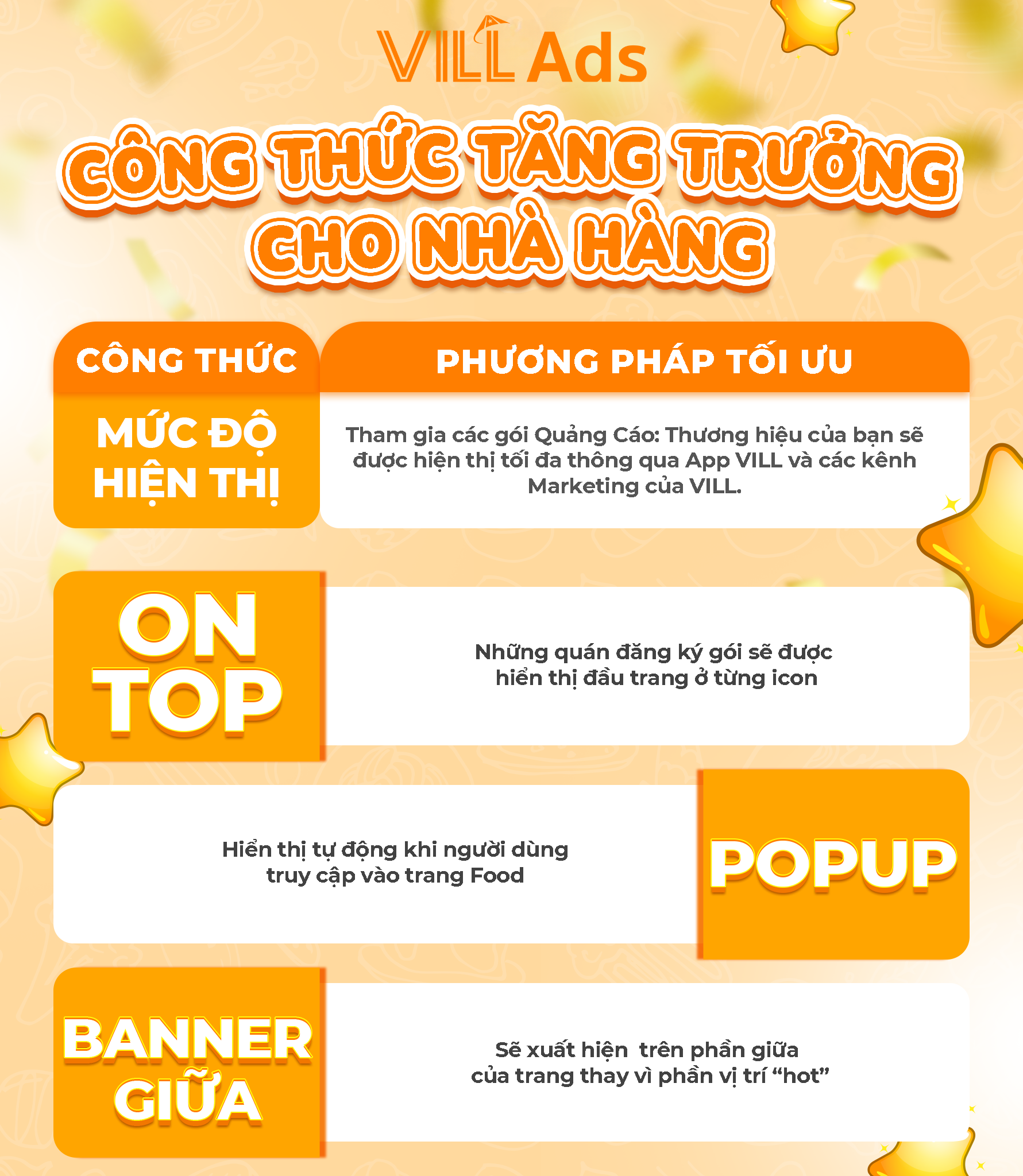Trên đây là tất cả thông tin về “Công thức tăng trưởng cho nhà hàng”. Hy vọng bài viết này đã cung cấp thêm cho bạn nhiều kiến thức bổ ích. Để được tư vấn chi tiết hơn về các gói quảng cáo, phiền bạn vui lòng nhấp TẠI ĐÂY!