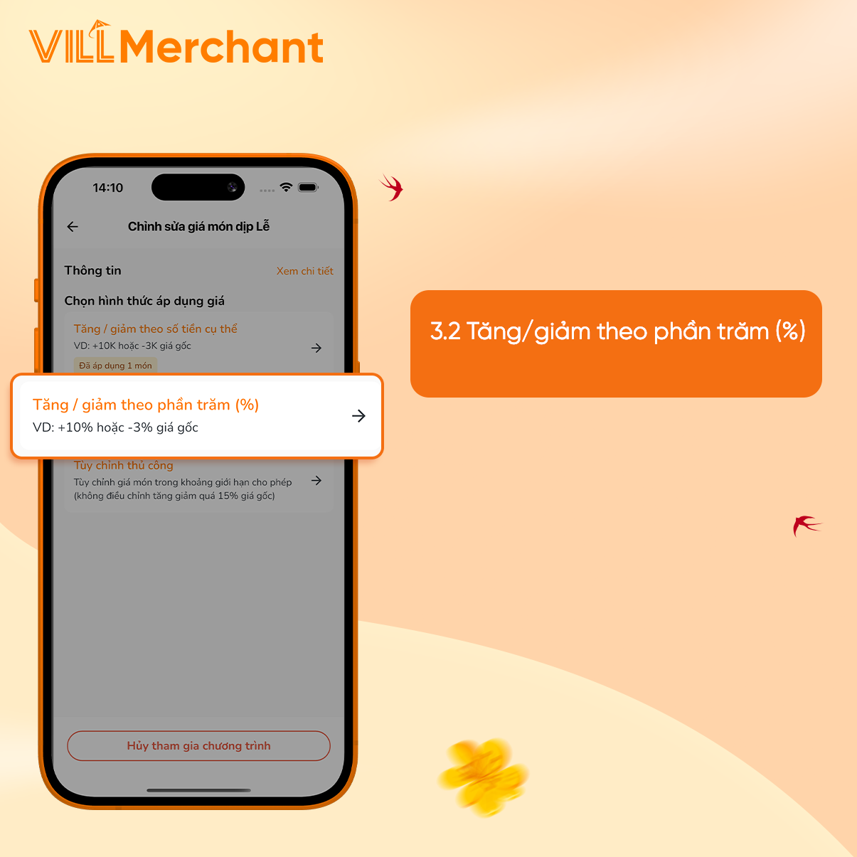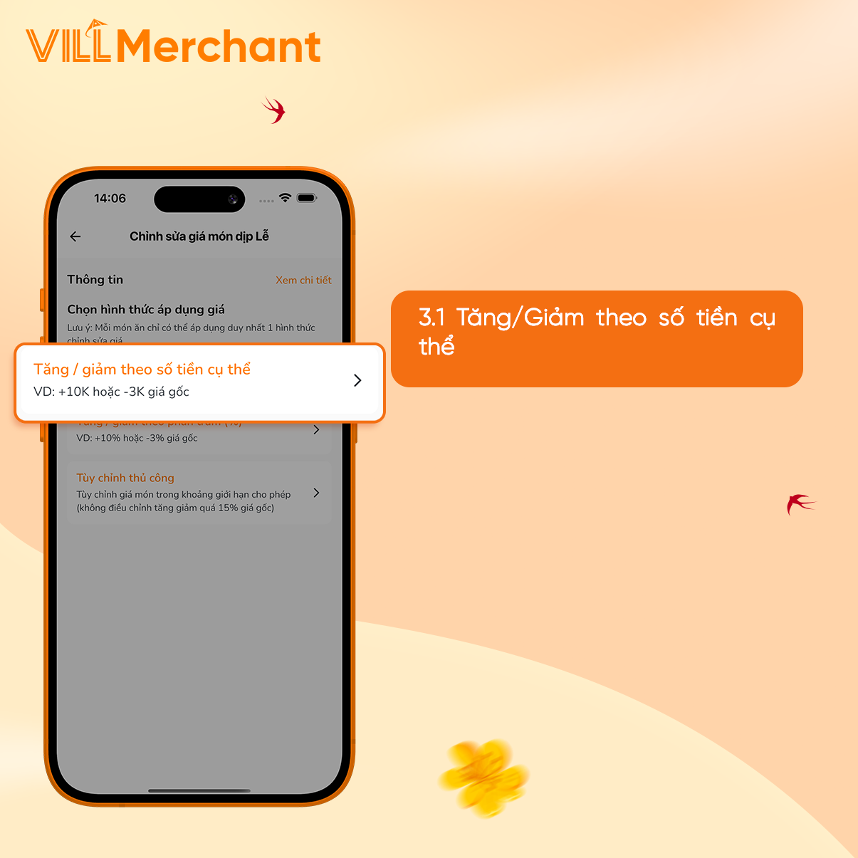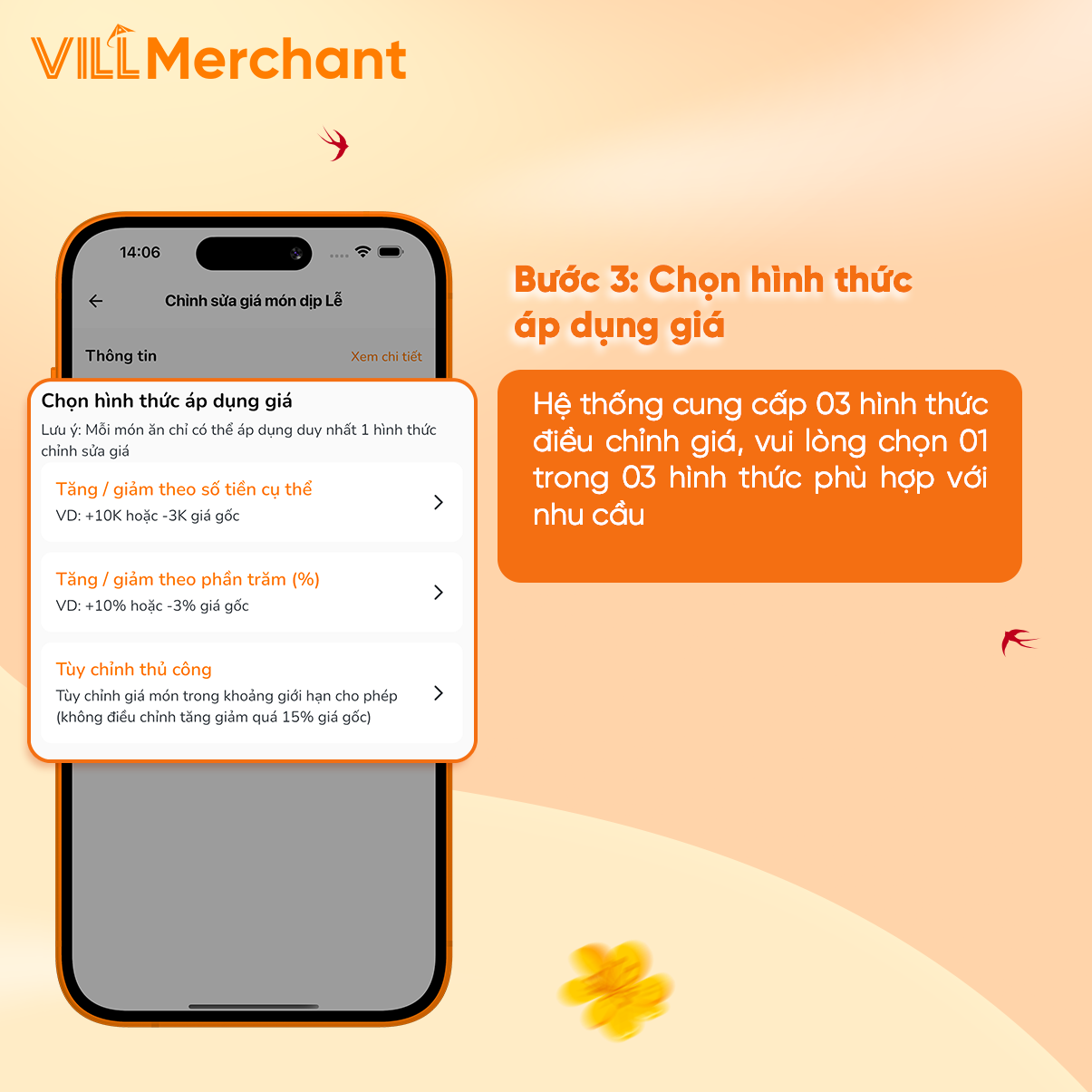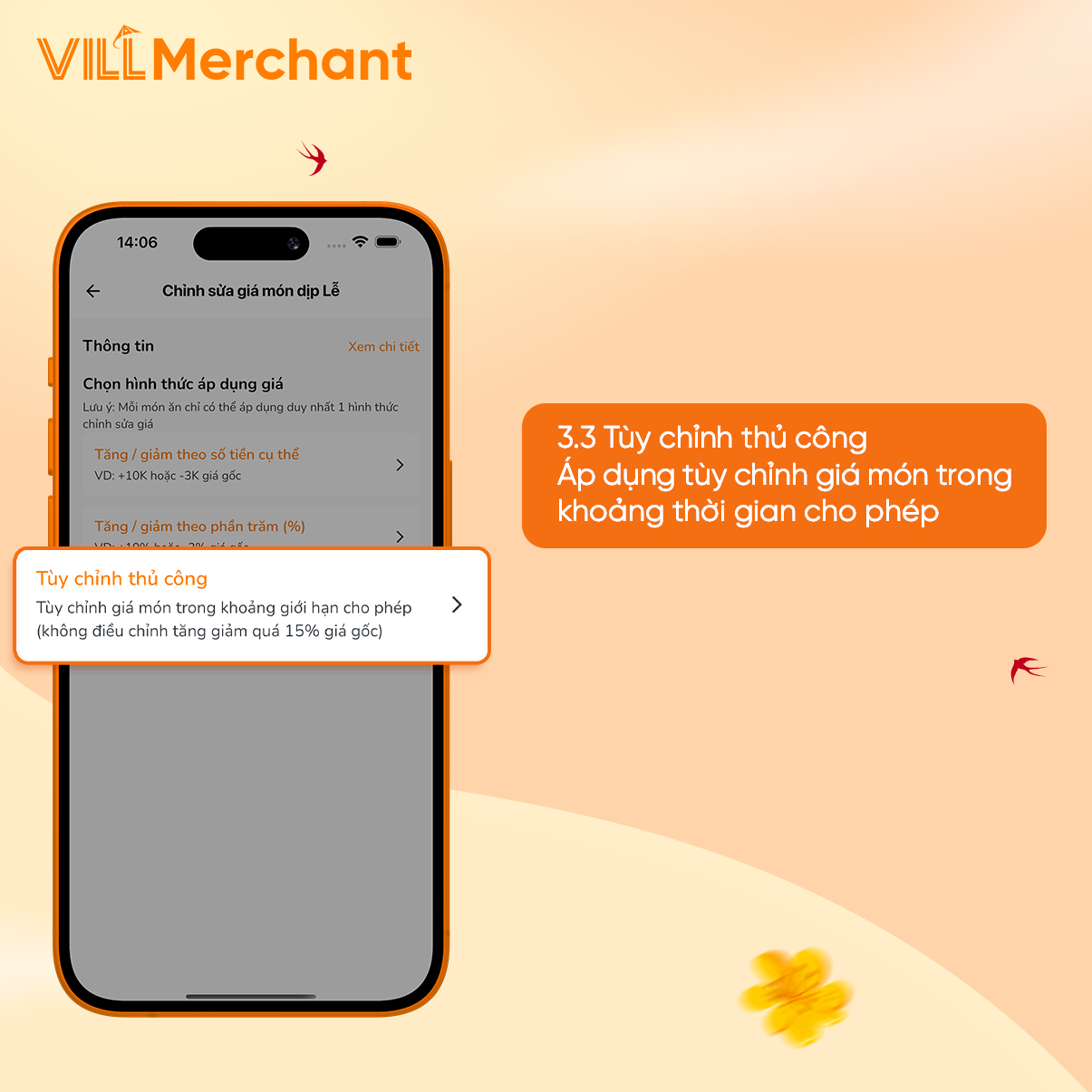 - Việc chỉnh giá dịp Lễ hoàn toàn do quán chủ động thao tác.