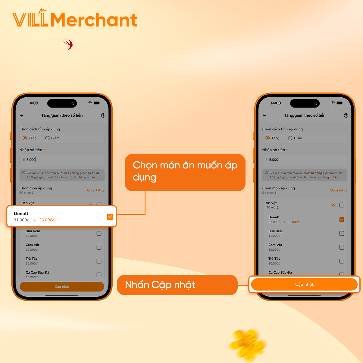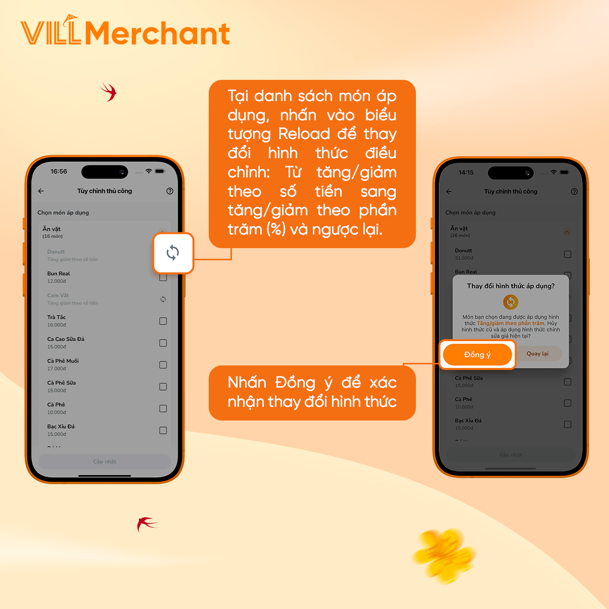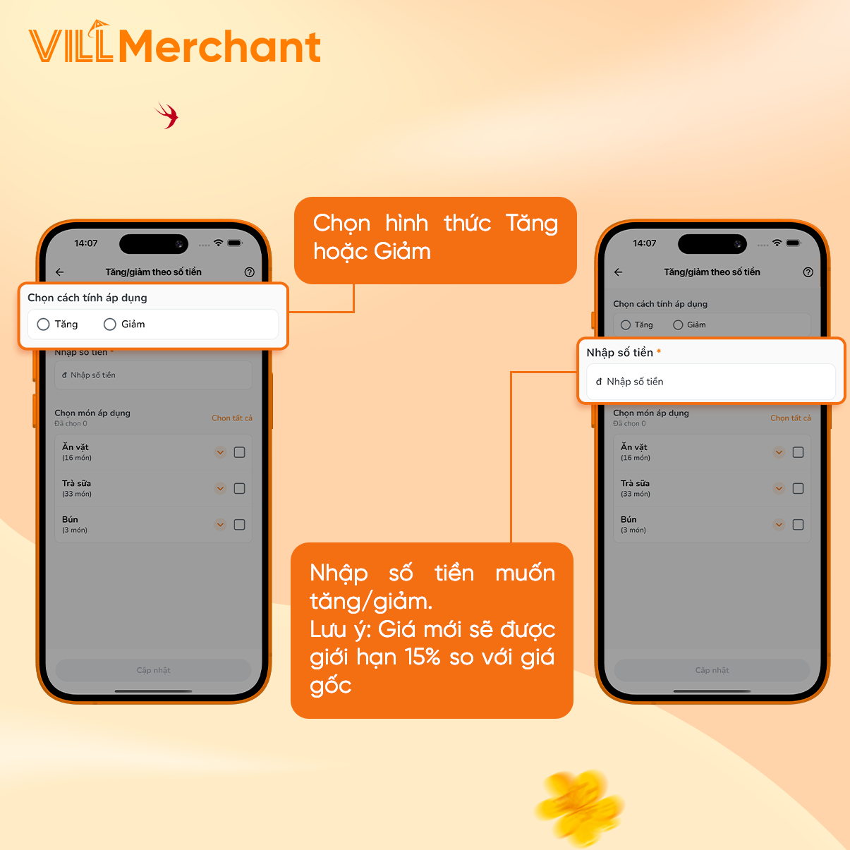 - VILL không tự động thay đổi giá nếu quán không thực hiện chỉnh sửa.