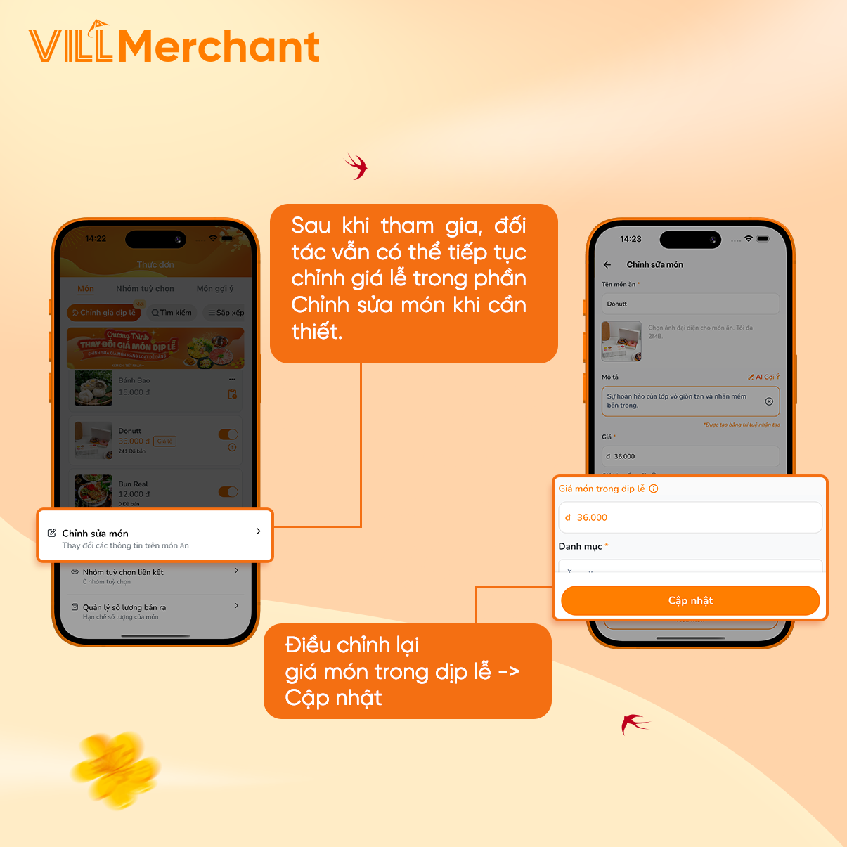 05/02/2026Vào các dịp Lễ/Tết, nhu cầu đặt món tăng cao kéo theo nhiều chi phí phát sinh như nguyên liệu, nhân công, vận hành. Để hỗ trợ các quán chủ động hơn trong giai đoạn cao điểm, VILL chính thức ra mắt tính năng mới: Chỉnh giá dịp Lễ.