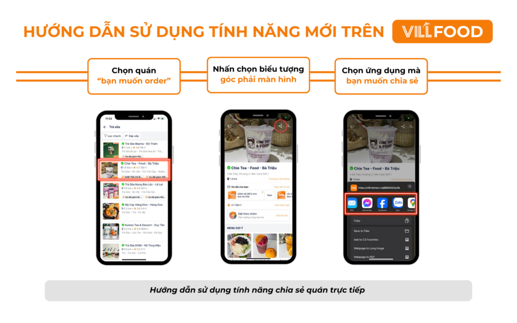 Để tiến hành chia sẻ quán ăn cho người thân, bạn bè, mọi người cần thực hiện theo những bước sau đây!
