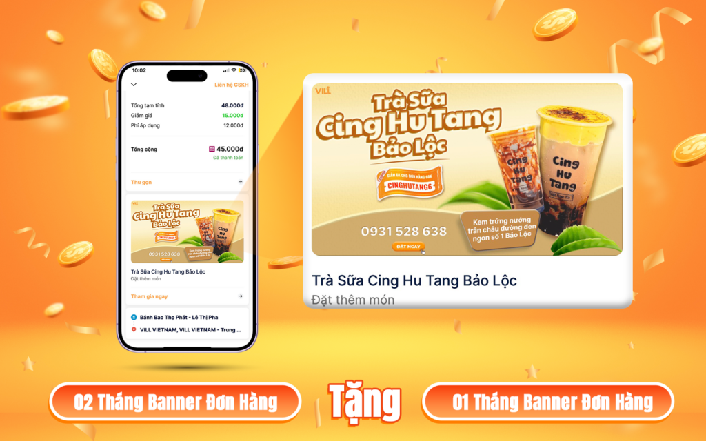 - Mua 2 tháng Banner đơn hàng TẶNG 01 tháng Banner đơn hàng.